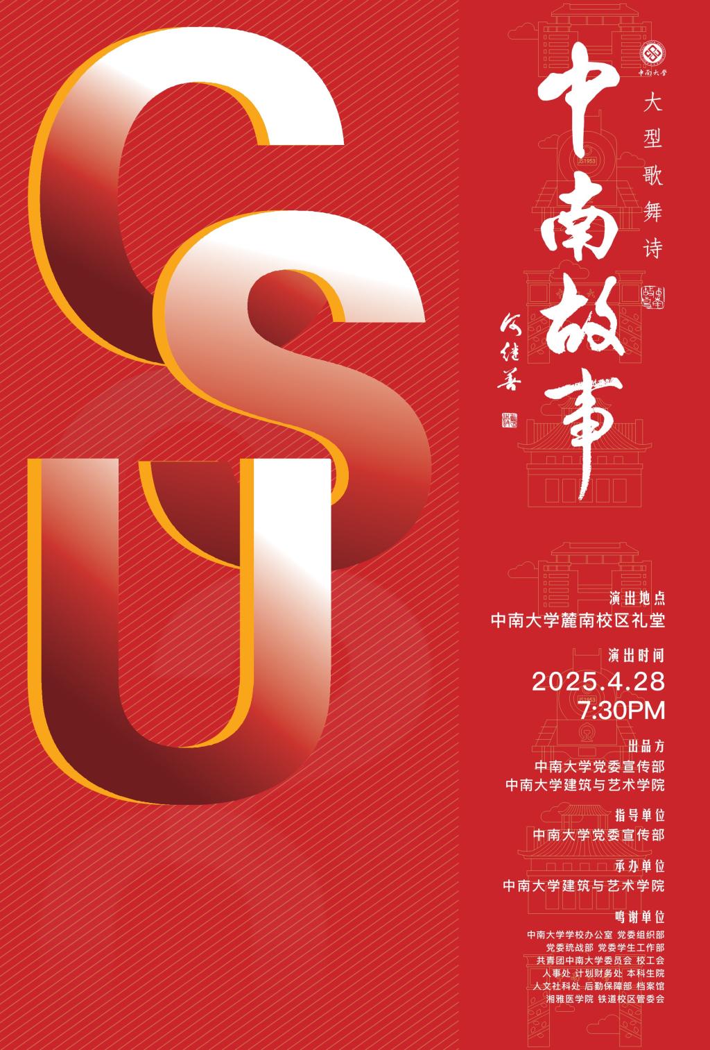 该剧以恢弘的艺术笔触,勾勒出中南人“敢为人先、追求卓越”的精神品格,既有“千磨万击还坚劲”的担当气魄,亦含“越是艰险越向前”的奋斗豪情。从筚路蓝缕的创业征程到波澜壮阔的改革实践,从立德树人的教育坚守到科技报国的创新突破,中南人的精神血脉在光影流转间熠熠生辉。该剧充分展现了中南人的崇高使命感和强烈的责任感,是一部感人至深、振奋人心的艺术佳作。
