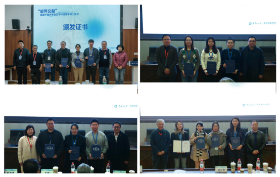王哲博士、张旎博士、贺怡雯博士、马晓昱博士进行汇报分享。由彭长歆、解明镜、李哲、李铌、赵超、王柯、田少煦、吴余青、朱力、谢旭斌10位教授作为点评专家,并为13位博士嘉宾颁发论坛主讲人荣誉证书。
