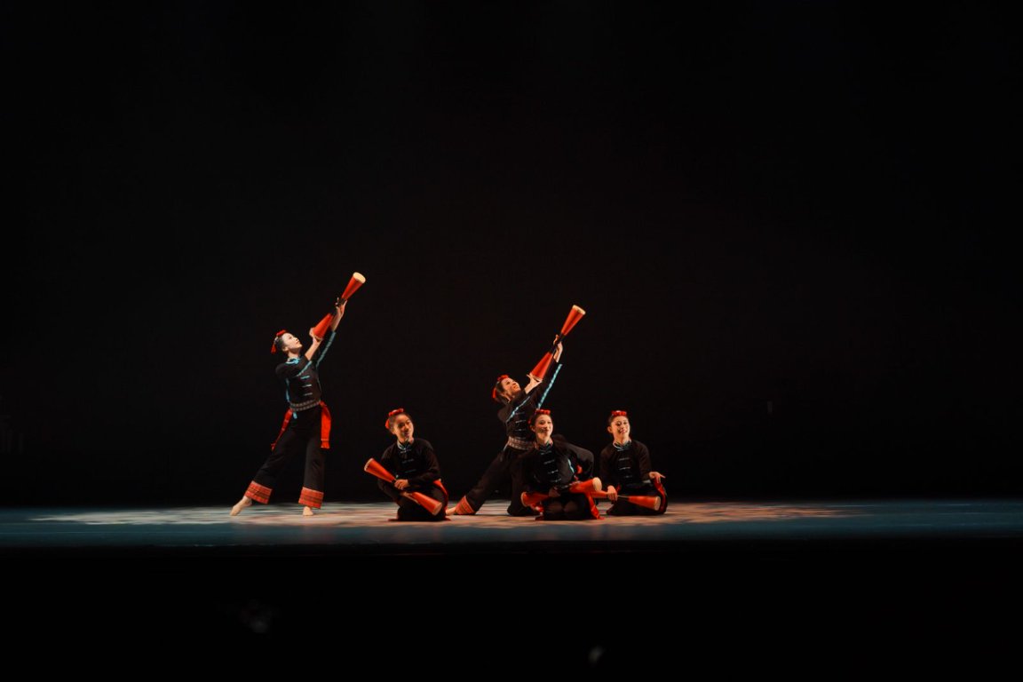 由伍彦谚、张梦然创作的侗族群舞《一盏小马灯》,以中央红军 “通道转兵” 这一重要历史事件为背景,以 “马灯” 为线索,巧妙提取侗族传统舞蹈 “多耶” 与 “踩堂芦笙” 等元素进行编排。深情演绎了围绕马灯展开的军民鱼水情深,带领观众重温那段峥嵘岁月,唤醒照亮中华民族历史的炙热记忆。