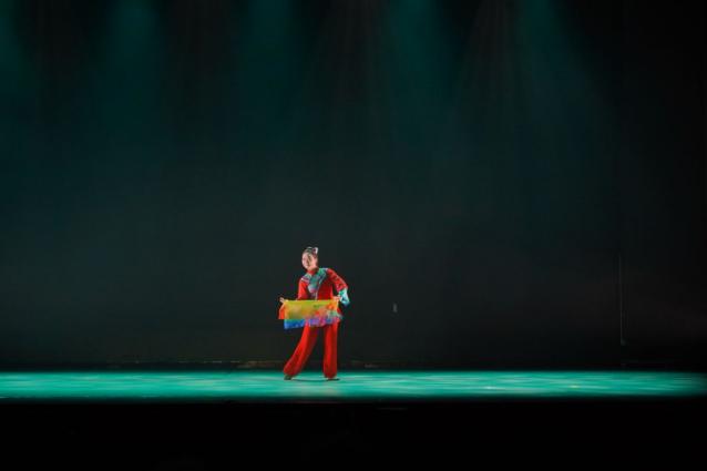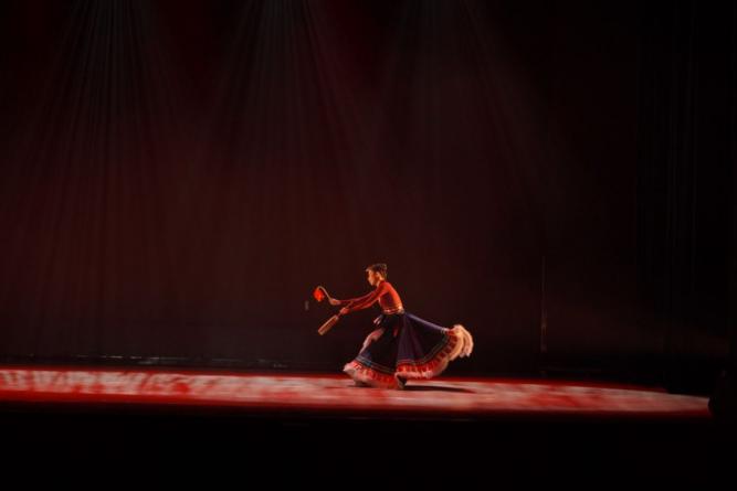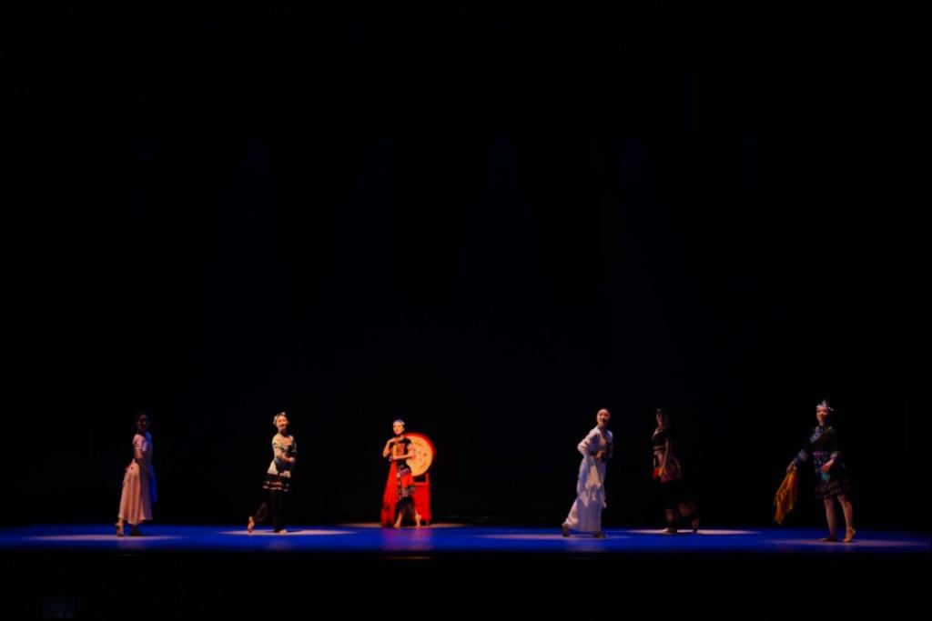 由龚倩教授指导的独舞串烧《韶华共舞》,从《徽娘》《洛神》《藏族热巴鼓组合》三个作品中选取精华舞段进行表演。舞者凭借精湛的技艺,在不同风格的舞蹈之间自由切换,完美展现出多元文化的碰撞与交融,为观众带来一场美轮美奂的视觉盛宴。