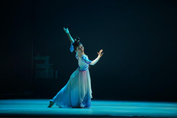由伍彦谚教授指导的独舞串烧《春澜时》,舞者选取了《温澜潮生》《一江春水》《那时花开》三个作品中的精彩舞段进行演绎。舞者化身春水之灵,在光影交织间细腻地演绎出少女的懵懂情感。其轻盈的身姿、灵动的舞步,如潺潺流水般诉说着青春的故事,将观众带入充满诗意与温情的艺术境界。