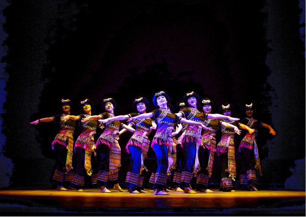 由伍彦谚、訾艺瑄精心创作的土家族女子群舞《向阳而生》,从土家族 “大摆手舞” 中汲取丰富养分,讲述当代土家织女幸福织作的事迹。舞台上呈现出 “引图腾万物入西兰卡普,现太阳花纹于美丽乡村” 的创新气象,热情礼赞今日土家幸福生活。