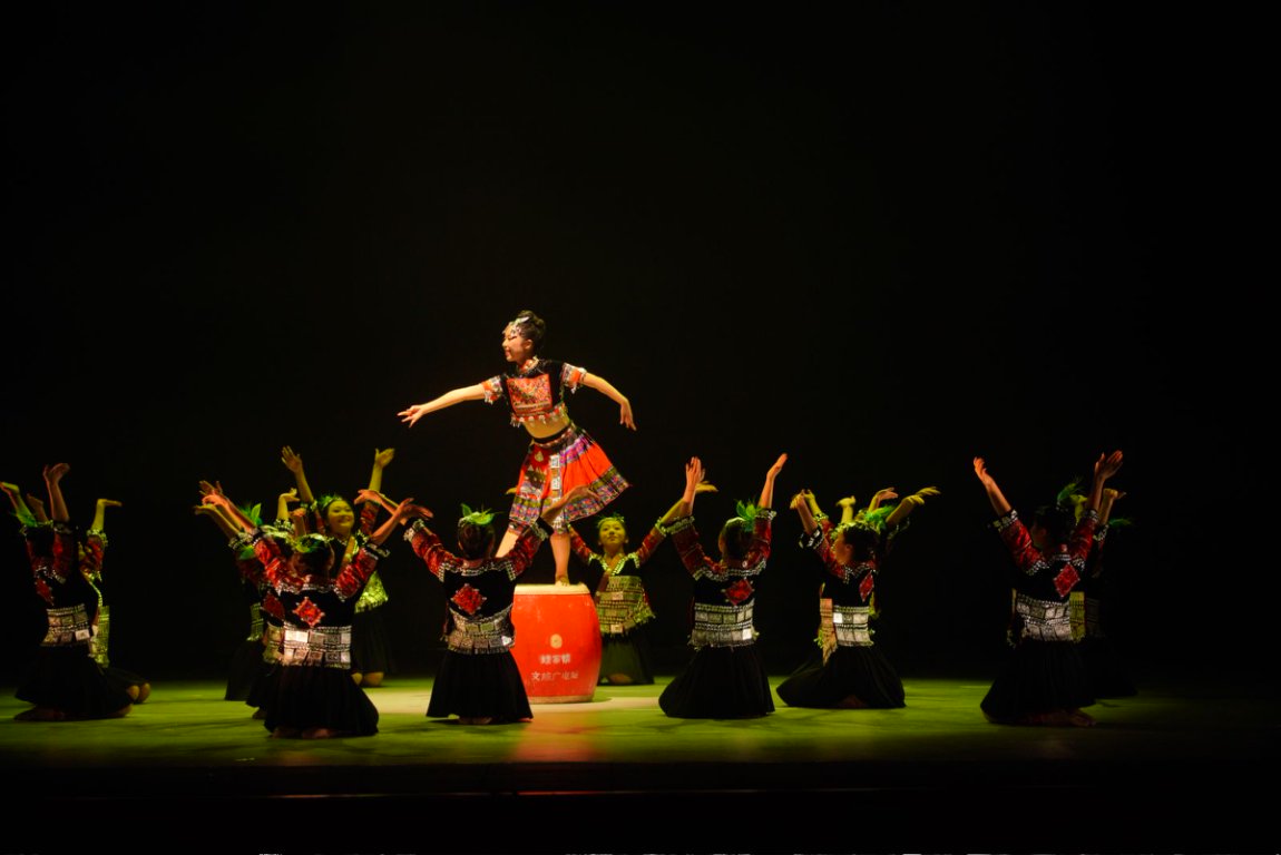由龚倩、曾黎、张梦雨编创的苗族群舞《稻禾鼓语》以苗族丰收庆典为灵感,巧妙融合苗鼓与稻禾元素。灵动的鼓点、优美的舞姿,生动描绘出苗族人民的农耕生活与欢庆场景,展现了苗族文化的独特风情。