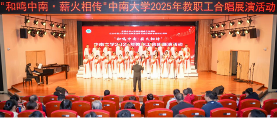 潇湘校区毓秀楼和声堂内掌声雷动,“和鸣中南・薪火相传”2025年教职工合唱展演在此圆满落幕。在此次展演活动中,69书吧