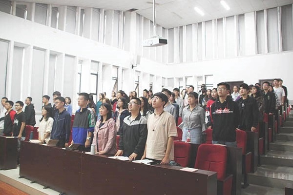 接着典礼在庄严的国歌声中开始,院党委副书记、分党校校长张金学教授发表讲话。张副书记首先对经过团组织推荐,党支部审查成为入党积极分子的同学表示祝贺,并以分党校的名义欢迎同学们参加本期培训班的学习。他要求同学们在学习期间认真听讲,做好笔记,积极学习党的理论知识,树立崇高的理想与信念并且向同学讲述了党课注意的事项。张副书记以“不忘初心,牢记使命”为主题进行阐述,强调大学生作为新时代的接班人应该更加努力、勤奋地为党、为国奋斗,成为能够担当重任的社会主义建设者。他希望同学们可以认真、踏实、细致,圆满地完成本期党校的教育教学任务,通过此次培训能得到更多的收获和感悟。最后,全体起立奏唱国际歌,开班仪式圆满落幕。