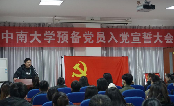 随后,张金学副书记向全体新发展党员表示祝贺,欢迎他们加入党的组织。他说入党宣誓是加入党组织的一个重要形式,这是党内政治生活的起点,因此他为全体同志提出三点要求:第一,认真学习党的基本理论。当下就是要把习近平新时代中国特色社会主义思想学懂、弄通、悟透,要掌握习近平总书记最新讲话精神,学习十九届五中全会精神,为接好社会主义现代化建设的接力棒、走好当代青年人生的长征路打好坚实的理论基础。第二,刻苦学习专业知识。广大同学将在十四五和二零三五远景规划目标实现的伟大进程中由旁观者变成参与者、组织者、决策者,只有明白自己的历史使命,才能在未来的工作中发挥作用、做出贡献,由此要珍惜在校生活,练就为人民服务的本领。第三,充分发挥先锋模范作用。在抗击疫情的伟大斗争中,党中央和各级党组织带领广大党员和全国各族人民为取得抗击新冠疫情人民战争、总体战、阻击战做出了艰辛的努力,所以党员同志要在党和人民需要的时候勇敢地站起来,在高校期间党员同志要带领全体同学认真学习文化课的知识、帮助有需要的同学健康成长顺利完成学业、积极开展批评和自我批评,引导和影响身边同学形成正确的世界观、人生观、价值观。他还为全体新发展党员佩戴党员工作牌,发放党建笔记本、U盘等学习用具,要求同志们践行誓言,在学生群体中亮明党员身份,做好表率,为党的事业不断奋斗。