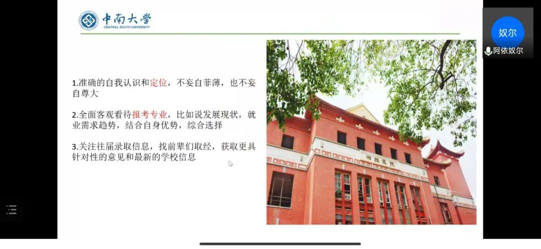 冶金与环境学院毕业生巴戈江·努尔兰,以“实现梦想从不分地域”分享了自己在宁德时代工作的拼搏经历,并为到会青年提供了许多参考建议;商学院毕业生其美,“回馈家乡,返乡致用”,为与会学子讲述了自己回到家乡、建设家乡,并创办西藏建邦建筑有限责任公司的创业经验;怀揣着为医学事业贡献自己青春力量的热忱之心,通过研究生考试,前往中国疾病预防控制中心深造修读的湘雅公共卫生学院毕业生阿依奴尔·买买提依不拉音,分享了自己“考研那些事儿”;69书吧