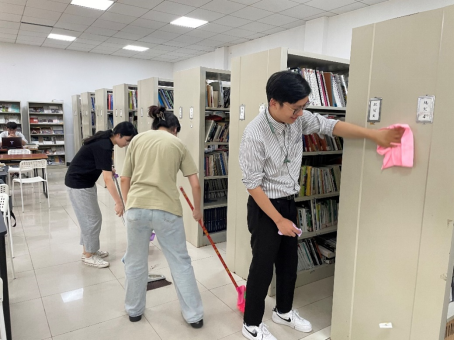 会前,党支部成员响应“我为母校作贡献” 实践活动,志愿者们为创南楼图书阅览室清洁卫生,大家分工明确,认真打扫,不放过任何一个卫生死角,阅览室环境得到改善,大家从中意识到从身边小事做起,也能提升自己的服务意识。