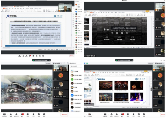 此外,为加深同学对报考专业的了解,各学科专业分别进行了主题讲座。郑伯红教授讲授了建筑学和城市规划硕士研究生培养发展历史、培养特色及教学团队,并对校外实践教学基地和实践教学情况进行介绍。朱力教授结合多个课题项目和产教实践案例,讲授设计学和艺术设计学科专业特点,凝练聚焦五大板块,介绍了中南特色的设计研究和创新教育模式。蒋烨教授则是通过一幅幅优秀的师生代表作品向大家展示了美术的魅力,带领同学们感受创作的情感。张俊教授介绍了音乐与舞蹈的专业特色,并就研究生培养方案等相关情况进行了详细解读和说明。学院研究生教育中心主任萧沁教授和罗曦博士分别对艺术类和建筑城规学术硕士和专业硕士的教学培养工作、导师队伍做了详细的介绍。通过线上的交流与互动,同学们对学院和学科有了更深的了解。