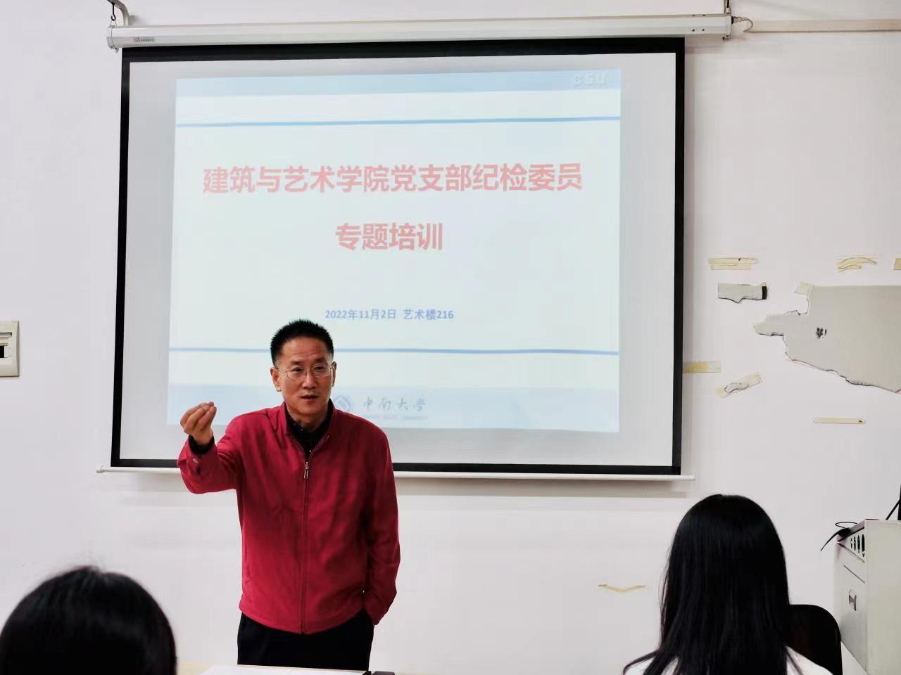 为积极响应中共中央和中央纪委深入学习宣传贯彻党的二十大精神的决定,切实加强纪检监察队伍建设,提高履职能力,11月2日,学院党委副书记、纪检委员张金学在艺术楼216会议室为学院各支部纪检委员进行专题培训。
