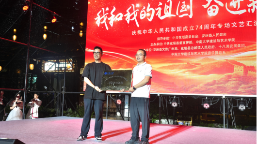 音乐舞蹈系研学、实习基地落户边城。演出开始前,十八洞文旅公司董事长石昊东与音乐舞蹈系青年教师臧陆老师为基地进行了挂牌仪式。