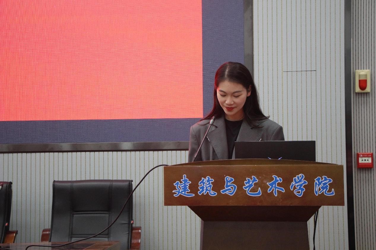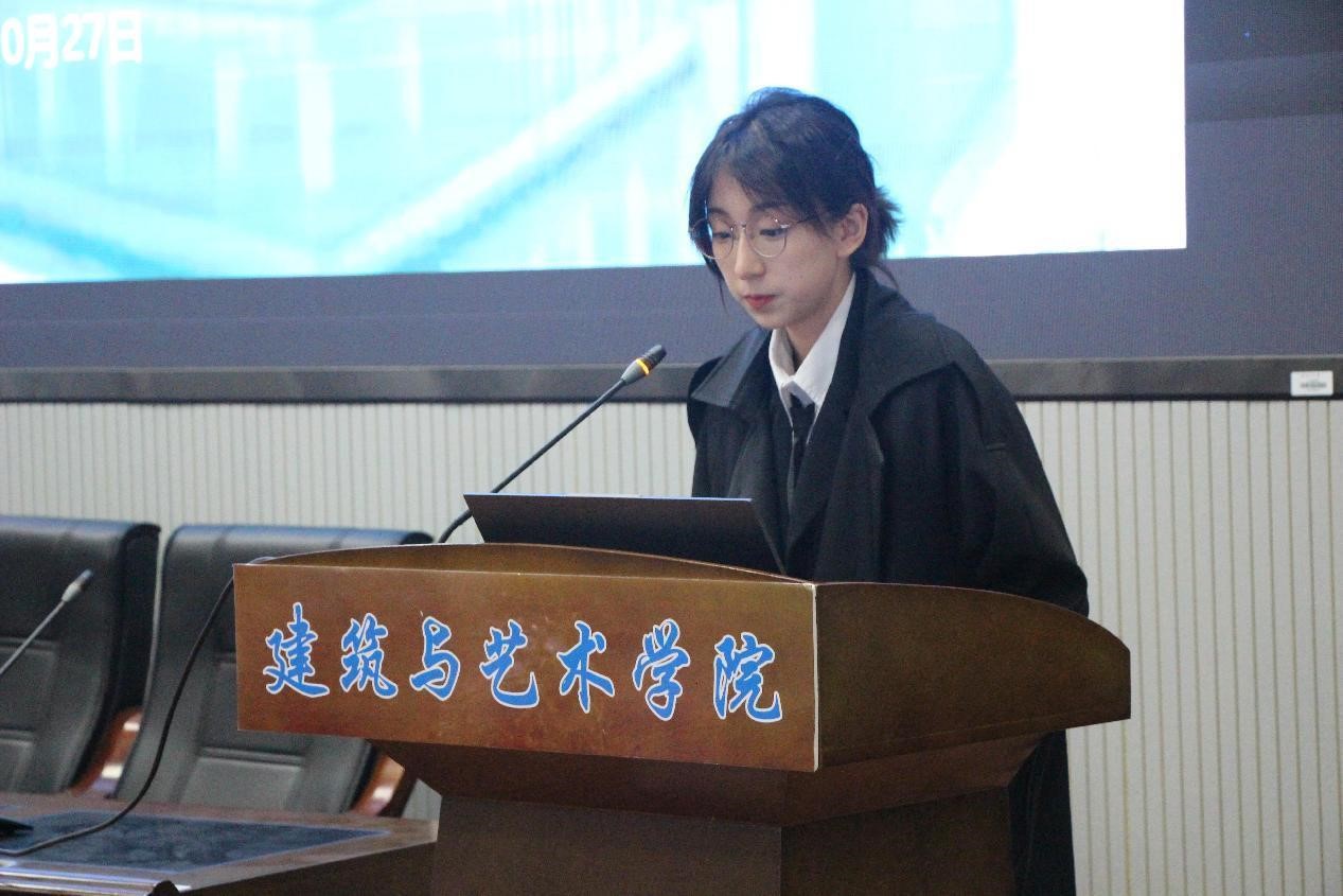 大会伊始,汪童介绍本次评优大会举办的意义,旨在培育和建设我院良好的学风、班风,增强同学们的集体荣誉感,鼓励和引导同学们树立优良学风、奋楫笃行。随后她介绍了答辩的评分细则和顺序,所有个人及班级依次按照抽签顺序进行班级五分钟、个人三分钟的答辩展示,简明扼要地展示班级与个人风采,最后由评委老师提问并打分。