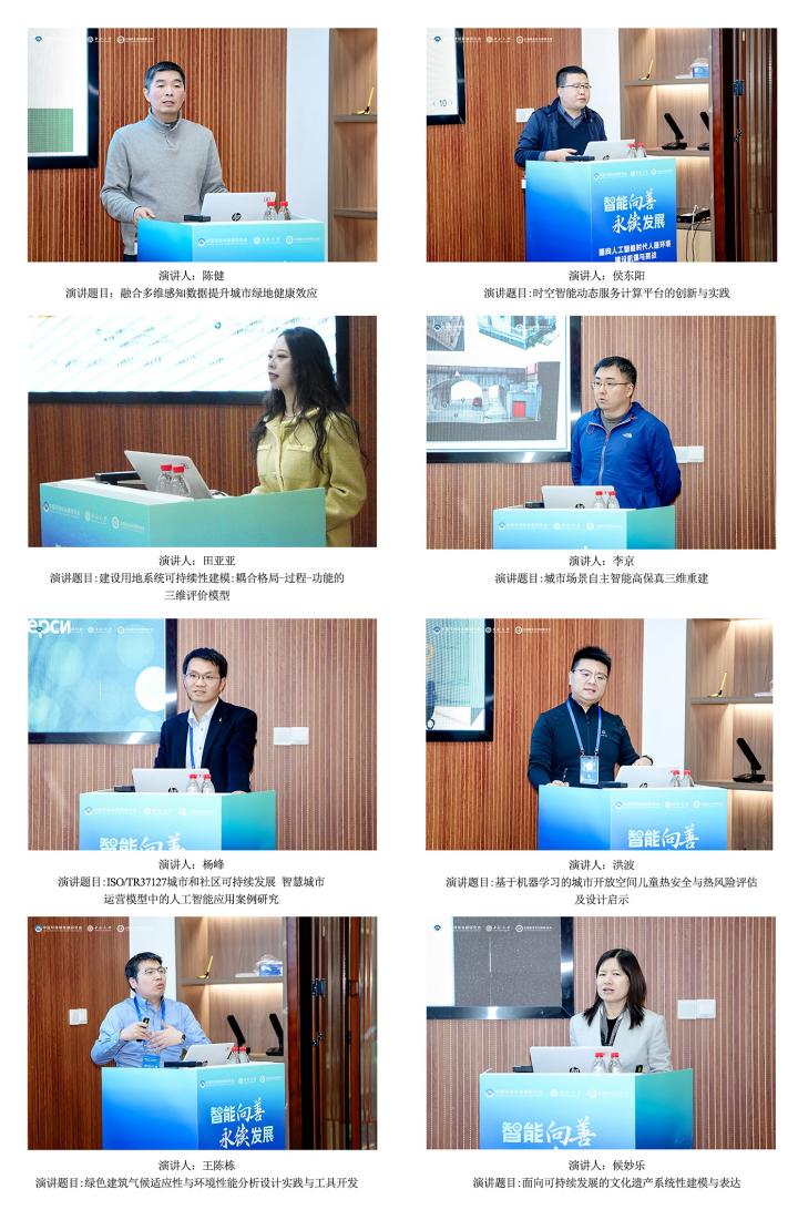 侯东阳副教授、重庆理工大学田亚亚老师、中国科学院李京副研究员、中国标准化研究院杨峰副研究员、西北农林科技大学洪波副院长、中国建筑设计研究院有限公司王陈栋教授级高工、长安大学国家级高层次人才侯妙乐教授。各位专家学者分享了AI技术在绿色建筑、遗产保护、低碳规划、空间设计、环境治理等关键领域的应用与创新议题,汇智纵论人居环境高质量可持续发展的前沿思路。